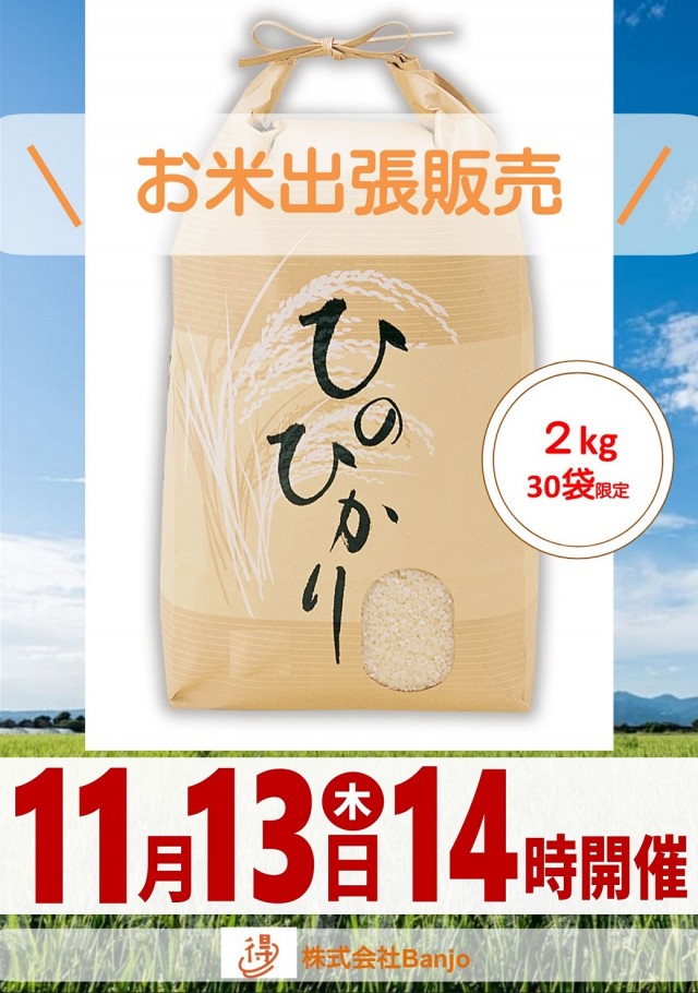 11月13日 本日お米の出張販売!朝10時開店