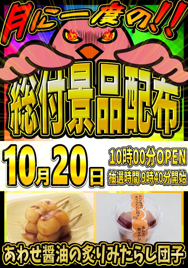 10月20日 月に一度の総付景品配布!朝10時開店!!!