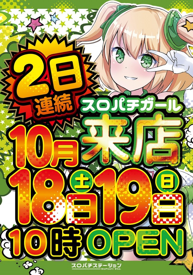スロパチガール2日連日来店!本日朝10時開店!!!