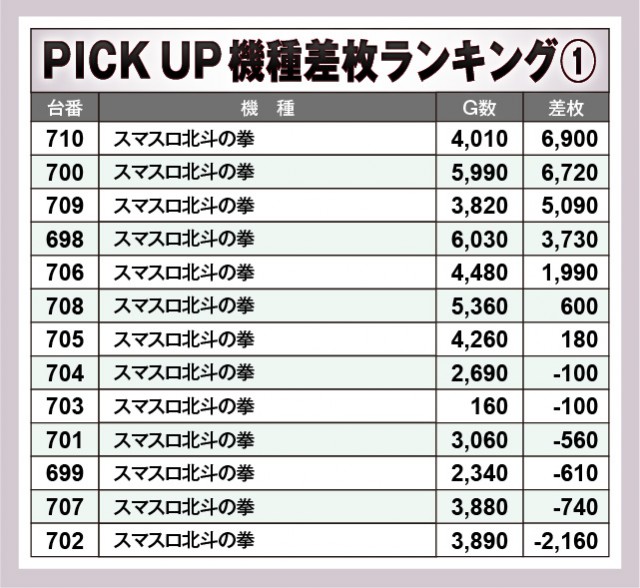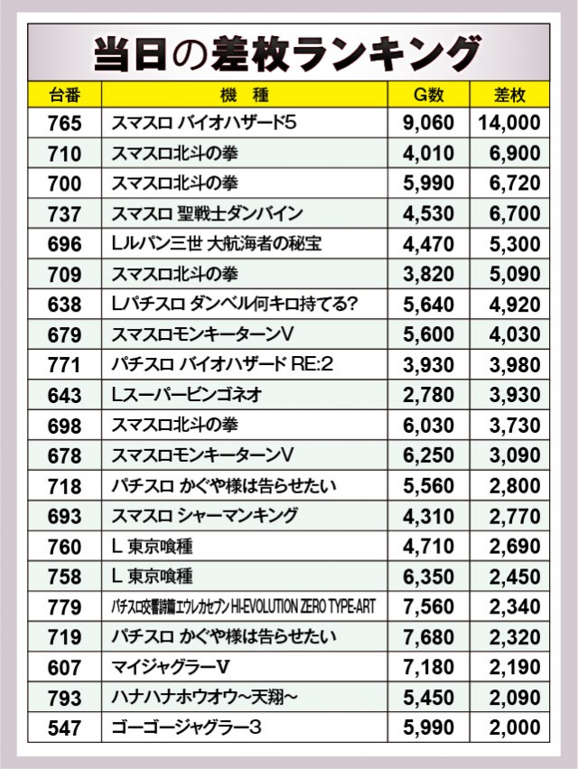 ※差枚数順に掲載しています。