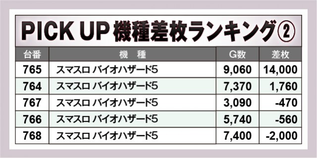 上表の優秀機種はいずれも大きなマイナスが少なく、高いパフォーマンスを披露していた様子が窺える。その中で万枚OVERを達成した『スマスロ バイオハザード5』の存在感は大きく、『スマスロ北斗の拳』も追随するように大きな熱気を放っていた。『スマスロ シャーマンキング』『Lルパン三世 大航海者の秘宝』もコンスタントに大当りを生み出しており、ファンはレバーオンが楽しい時間を過ごしていたことだろう。