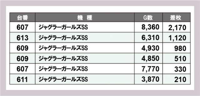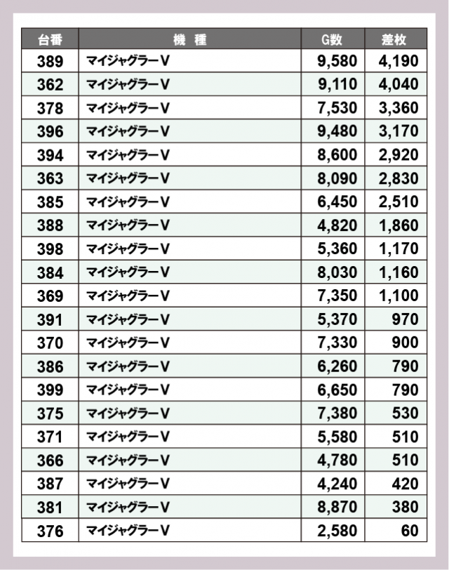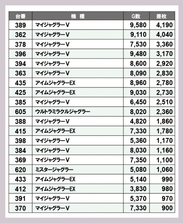 ジャグラー差枚ランキング