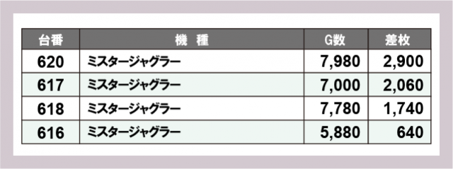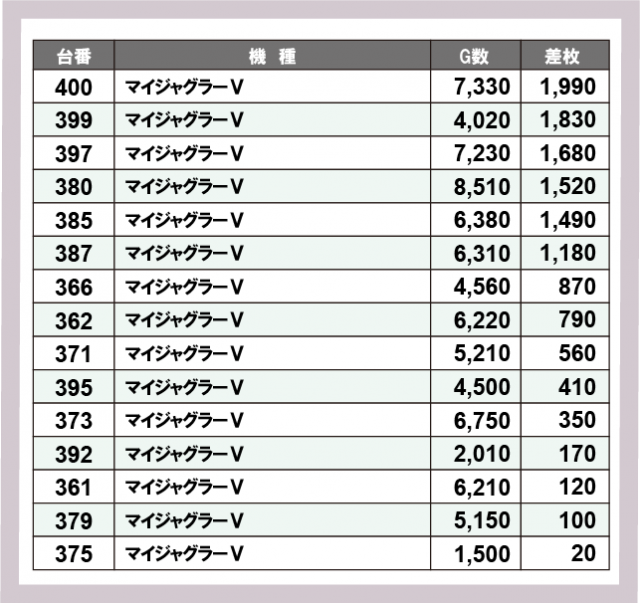 ジャグラー差枚ランキング