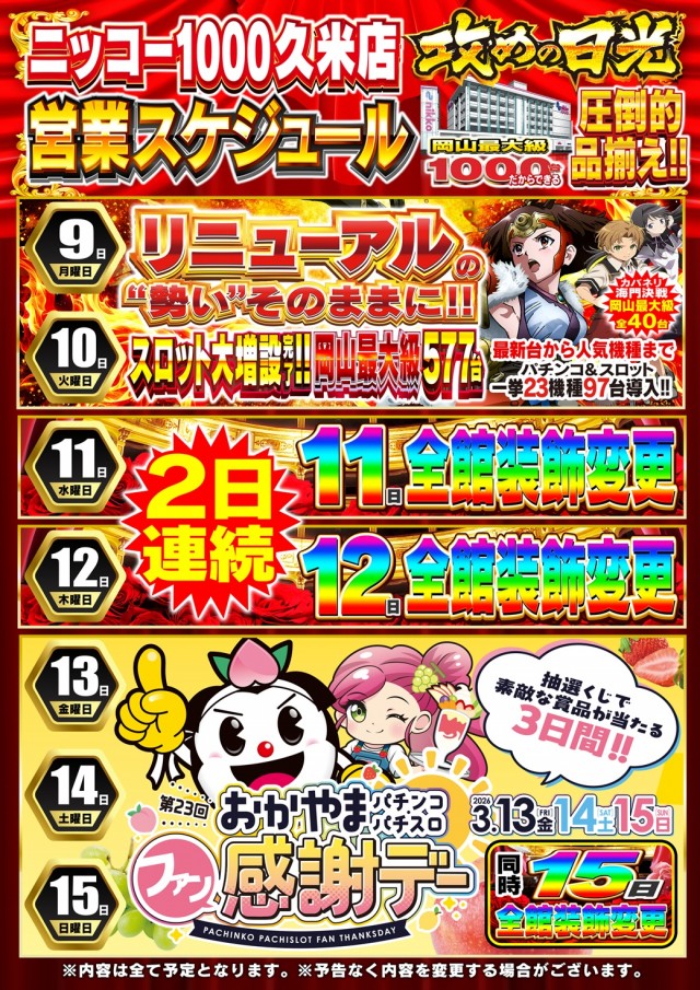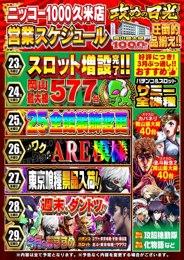 Nikko1000久米店のお知らせ一覧