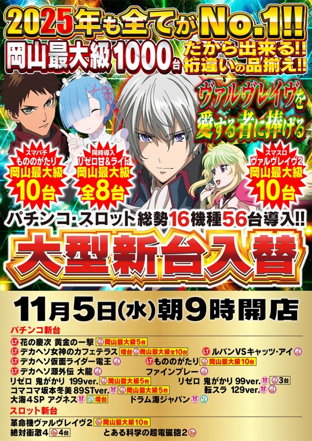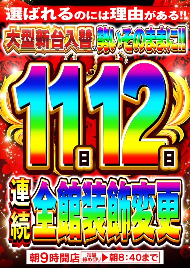 11月8日(土)★大型新台入替後 初週末!!★
