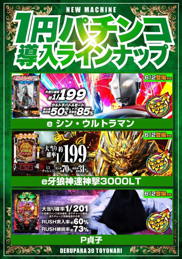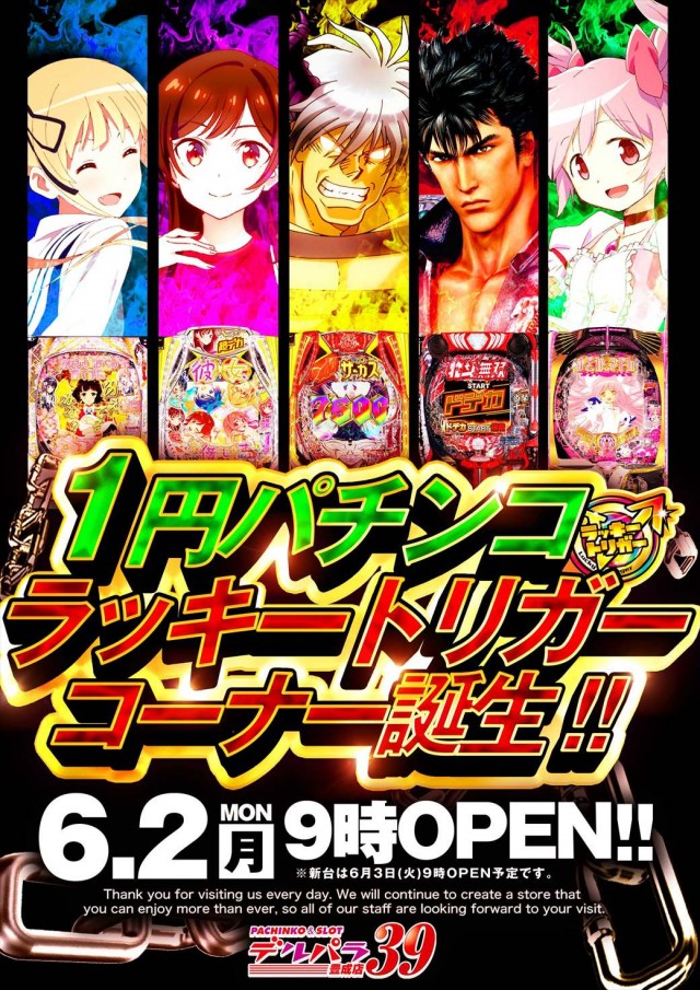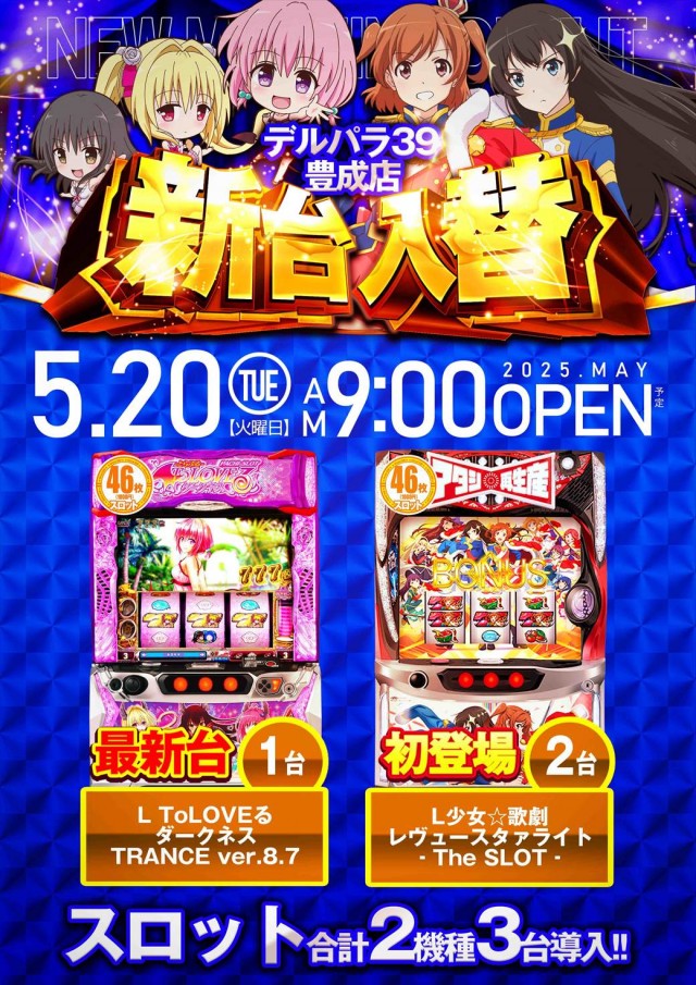 本日新台開店日!!新台打つならデルパラ39豊成店へ