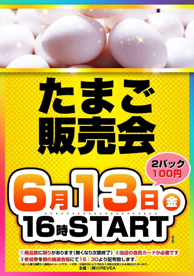 本日たまご販売会!!15:30より整理券を配布致します。