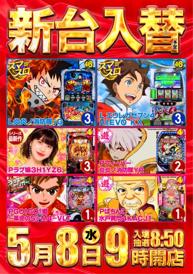 本日、新台入替!最新台導入完了!ご来店お待ちしております!