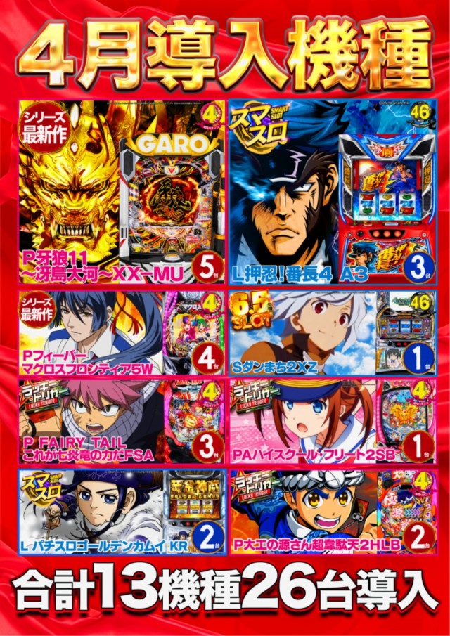 4月30日(火)最新台導入完了!ご来店お待ちしております!