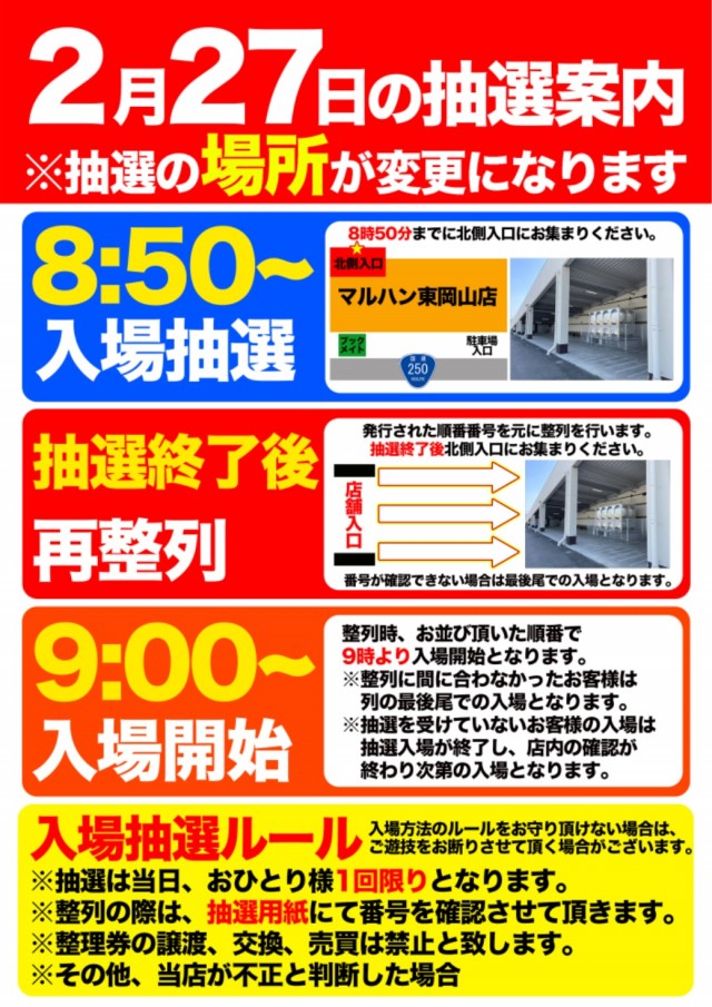店舗にて8:55より抽選(変更がある場合は、別途ご案内いたします) |