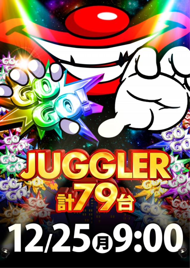 12月25日(月)9時開店!ジャグラーシリーズ79台設置!