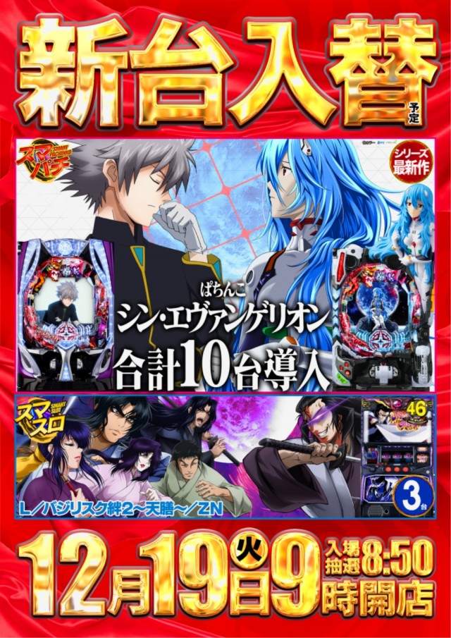 12月19日(火)朝9時開店!新台入替!最新機種導入!