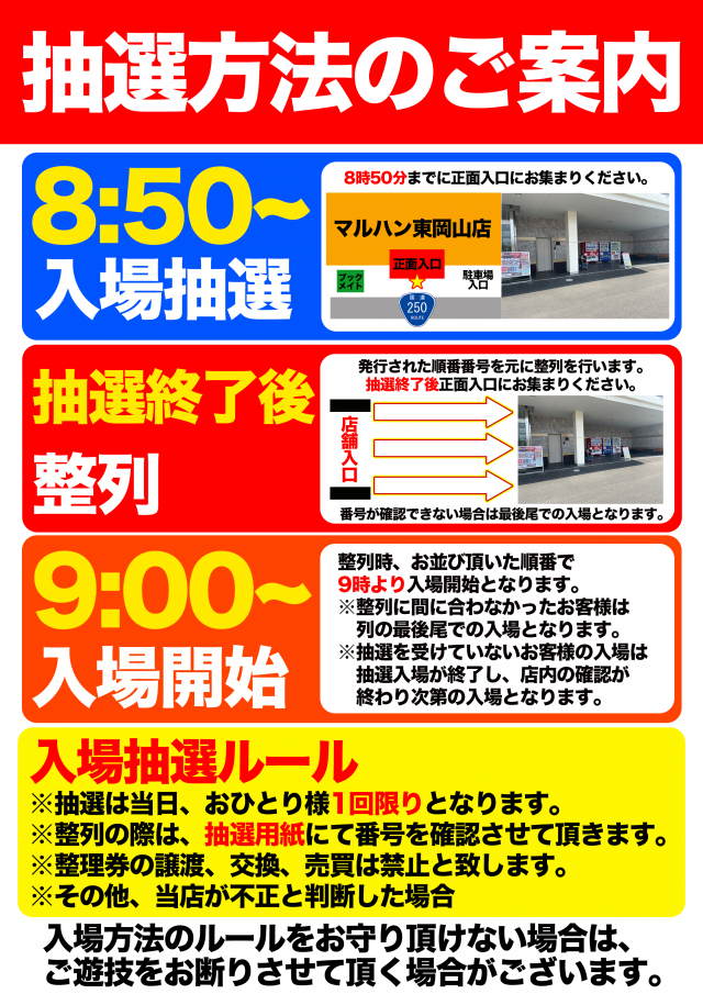 店舗にて8:55より抽選(変更がある場合は、別途ご案内いたします) |