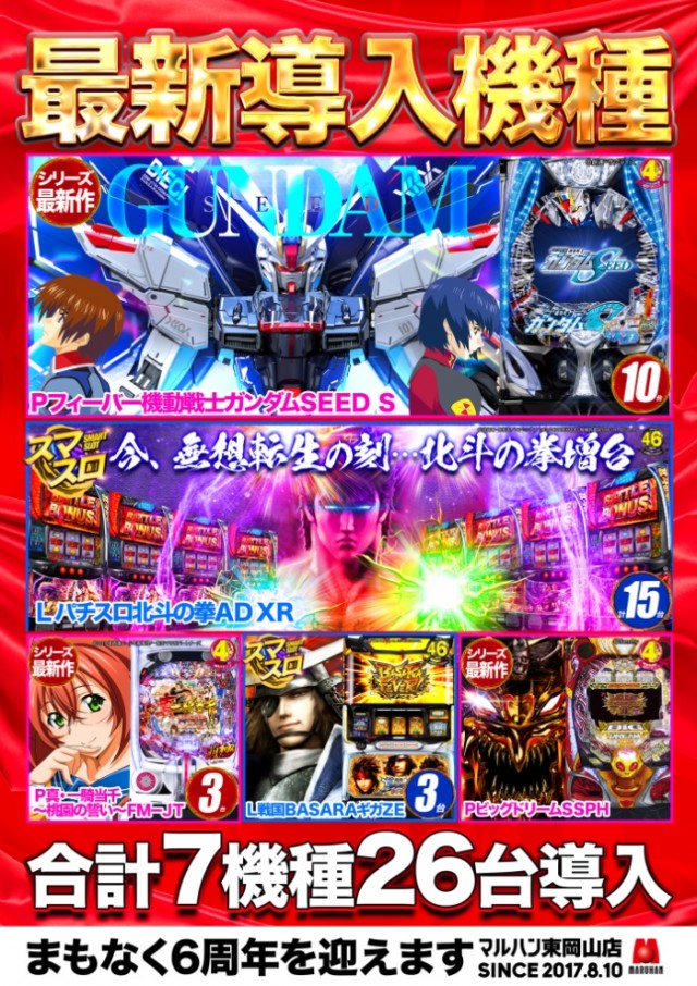 8月9日(水)まもなく6周年!最新台7機種26台導入済み!