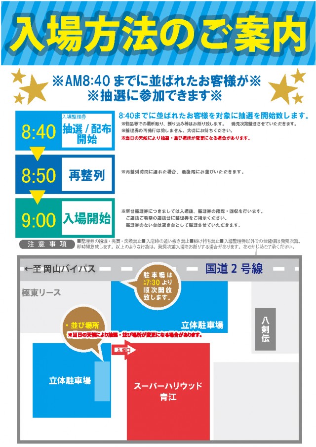 6/25(日) 【抽選入場】8時40分までにお集まり下さい