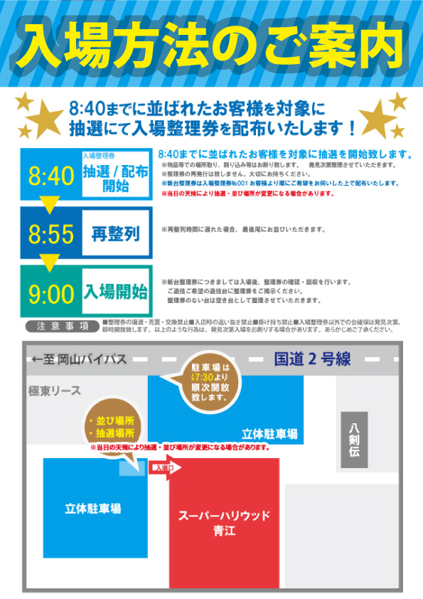 5/21(日) 【抽選入場】8時40分までにお集まり下さい!
