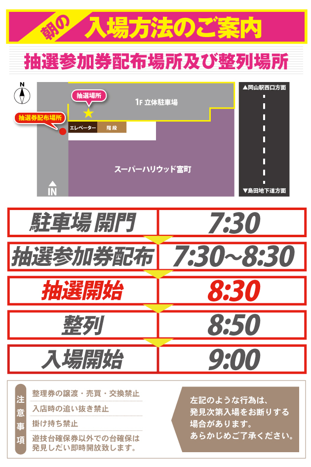 抽選はAM 8:30に開始(抽選参加券はAM 7:30~立体駐車場1Fで配布) |