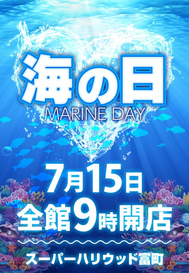 【重要】明日は海の日!7/15(月)全館9時開店!