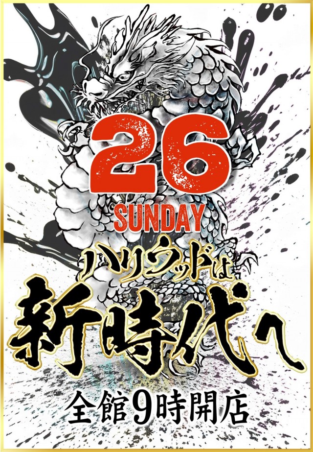 【重要】ご準備ください!本日!26日(日) 全館9時開店!