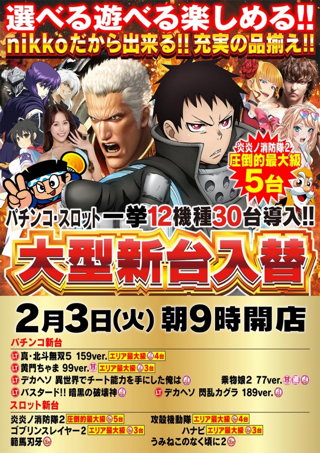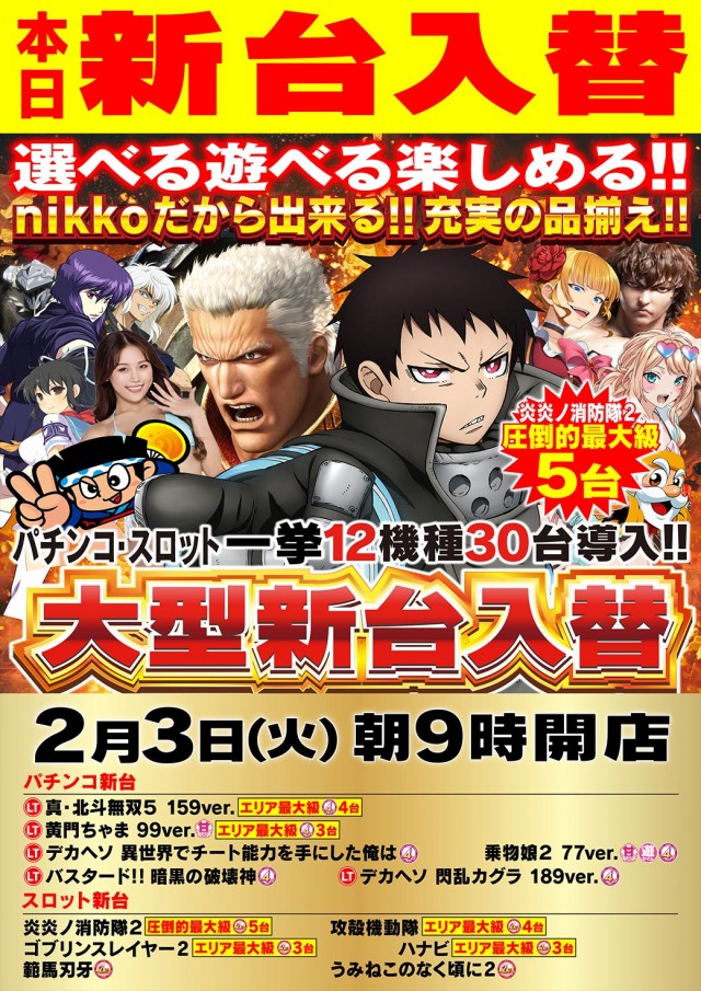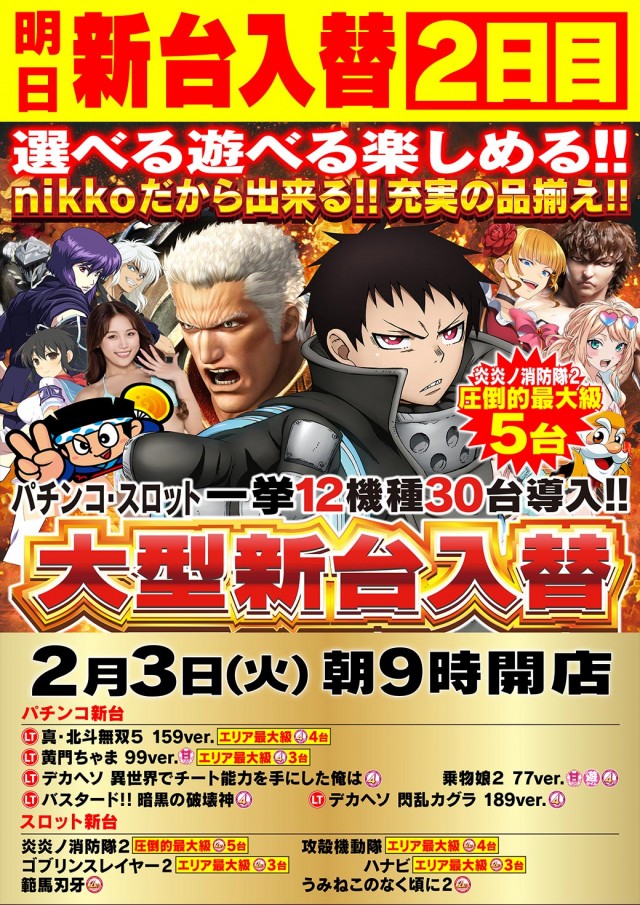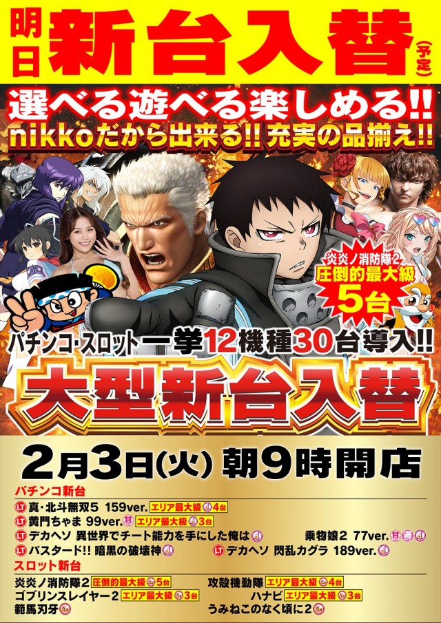 明日2月3日(火) 『大 型 新台入替』-初日-