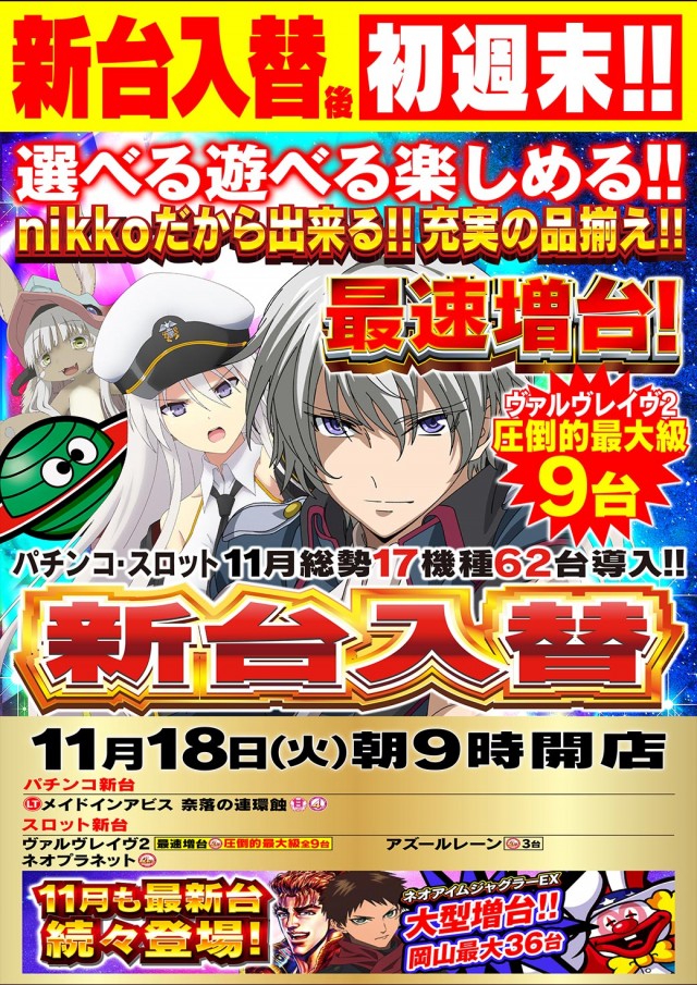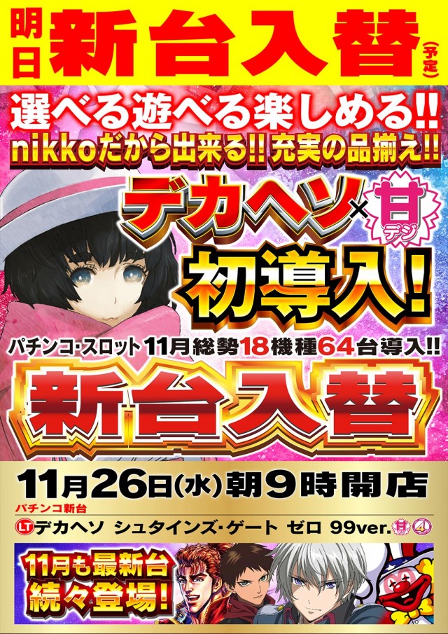 明日11月26日(水) 『新台入替』初日‼全館朝9時開店‼