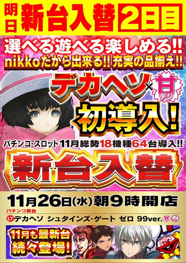 明日11月27日(木) 『新台入替』2日目‼全館朝9時開店‼