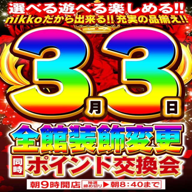 本日3月3日(火)【大型新台入替・初日】×【全館装飾変更】