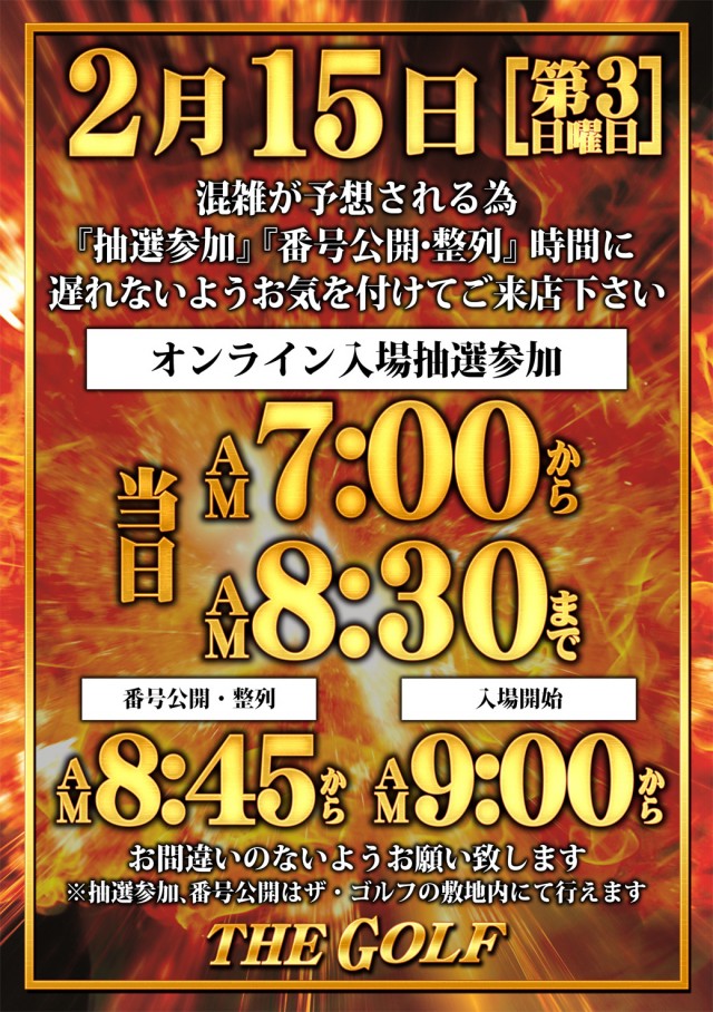 本日2月15日《第3日曜日》!両店合同!オリジナル景品入荷