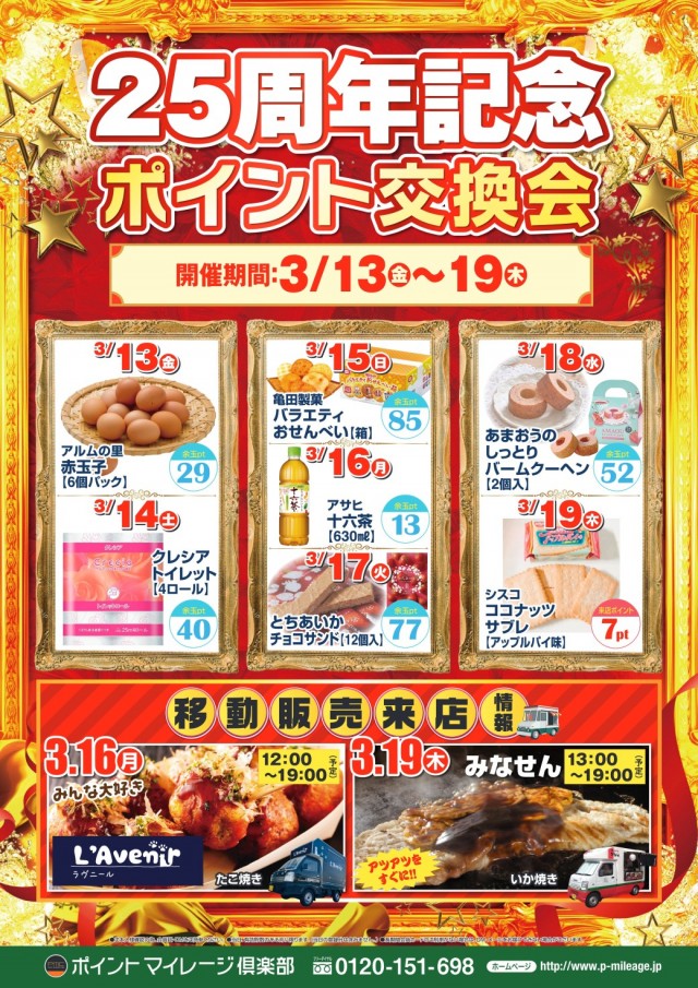3/13(金)~19(木) 7日間連続ポイント交換会開催!!