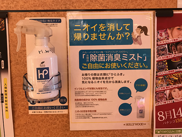 各所に置かれていた消臭剤やパチンココーナーに完備されている分煙ボードなど、タバコのニオイなどが気になるプレイヤーへの心遣いを感じられたことも印象に残っている。
