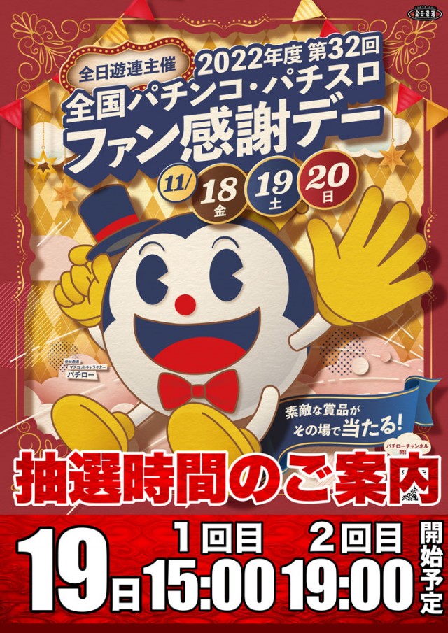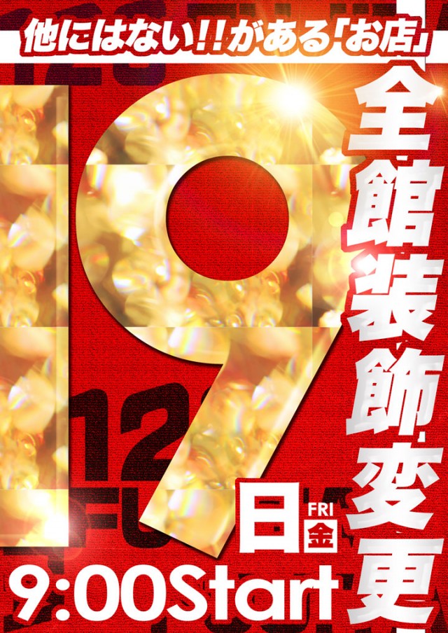 19日☆全館装飾変更☆パチンコ・パチスロファン感謝デー開催!