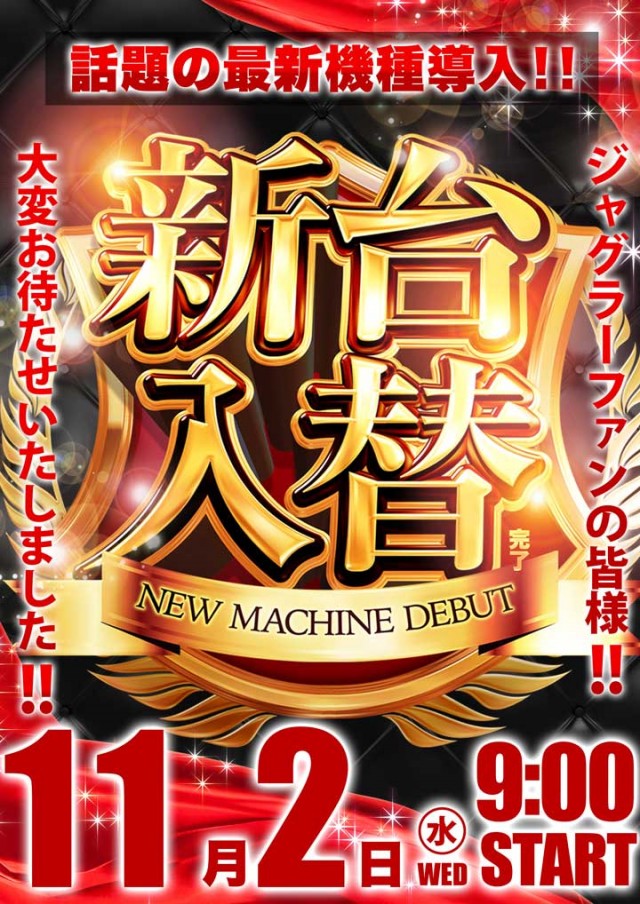 💥明日11月8日💥パチンコ&スロット🌟≫≫新台入替≪≪🌟