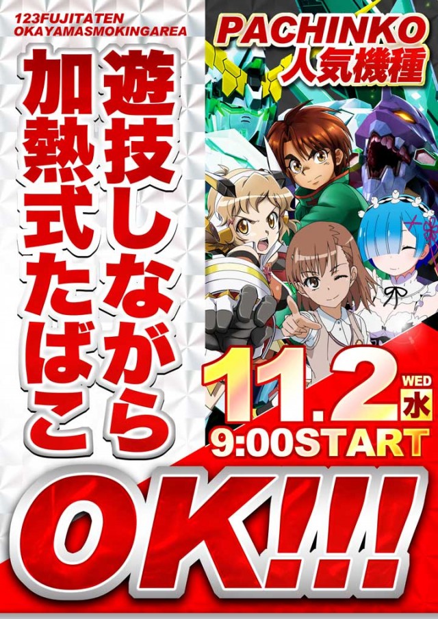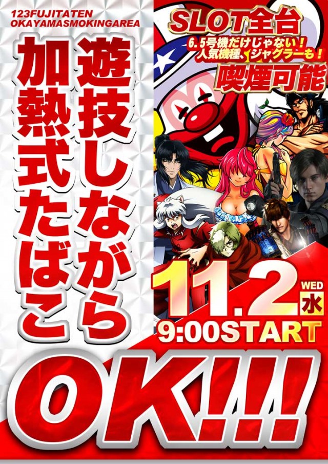 11.02★最新台導入完了!!★遊技しながら加熱式タバコOK