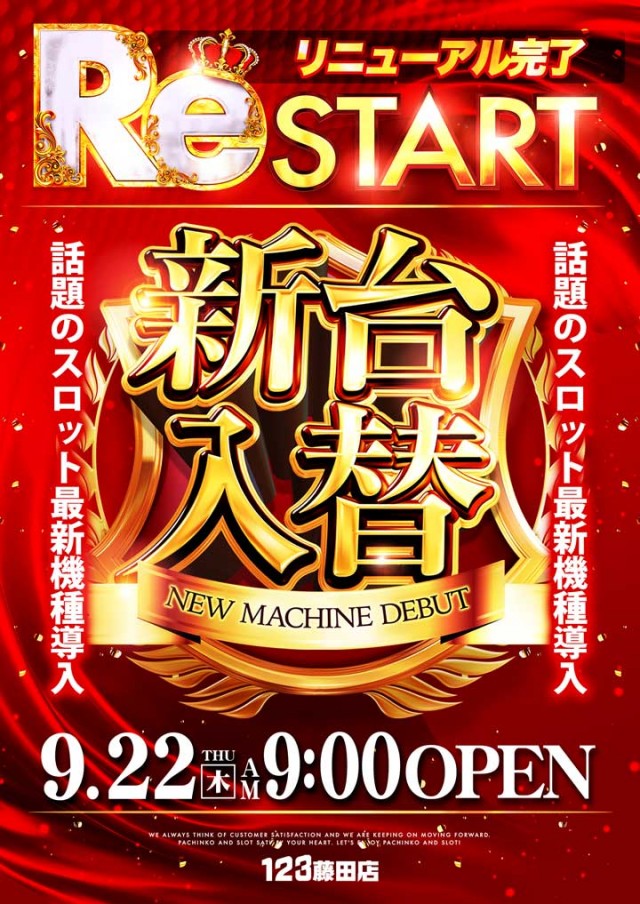 ★9.23★≫三連休はReSTART&新台入替完了の藤田店へ