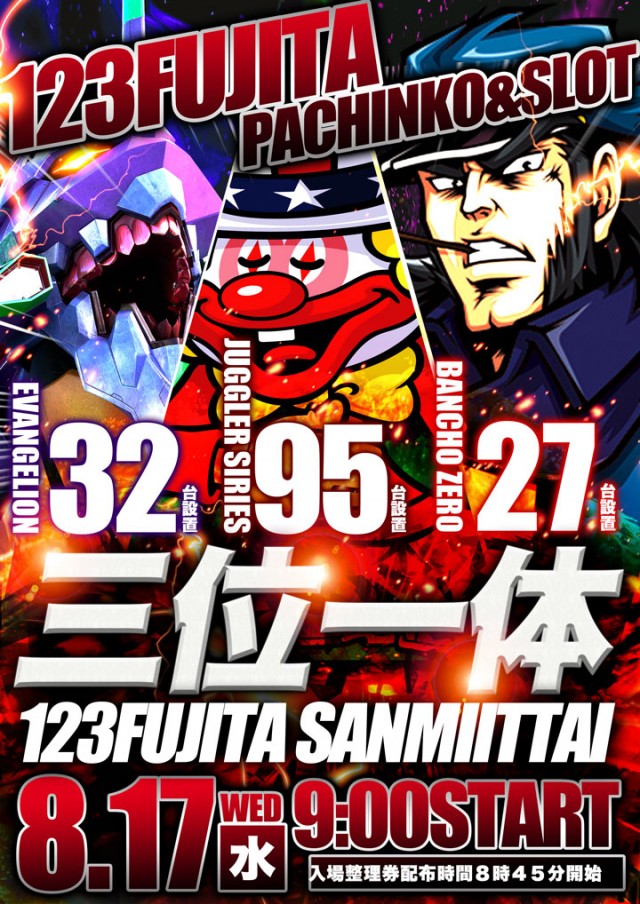 8.17★三位一体★夏後半も123藤田店で!最新機種導入済!