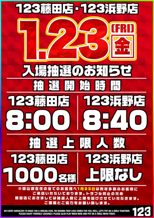 1.23【金】THE ONE!入場抽選8:00開始予定!