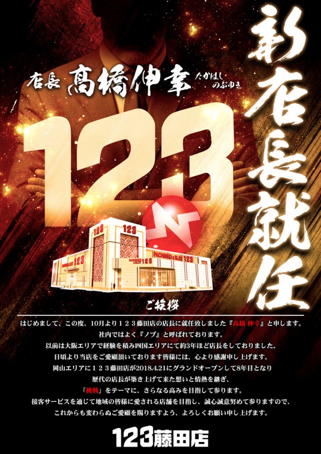 新台入替!!月末も123藤田店へ!8時30分入場抽選開始!