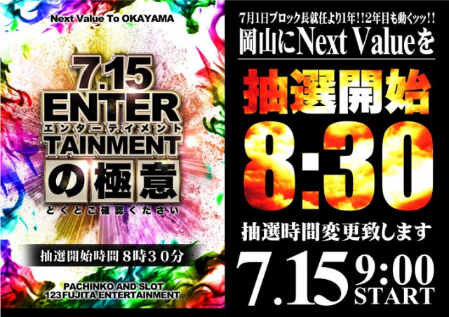 11日NO1エンターテイメント★全館装飾変更8時30分抽選!