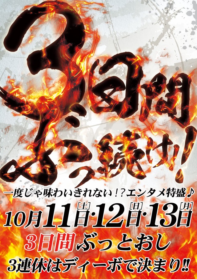10月 《3連休=ディーボ》 3日間ぷっとおし !!