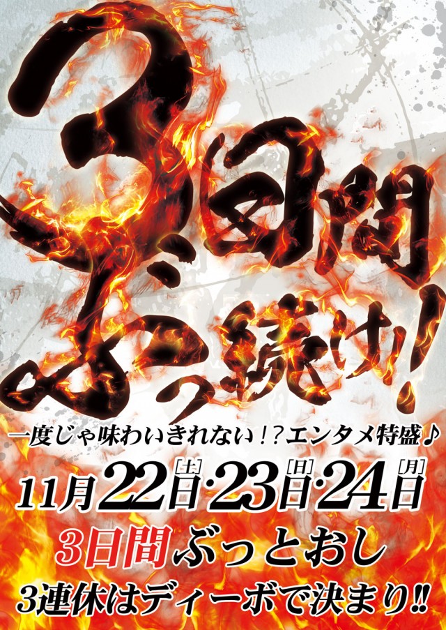 11月 《3連休=ディーボ》 3日間ぷっとおし !!