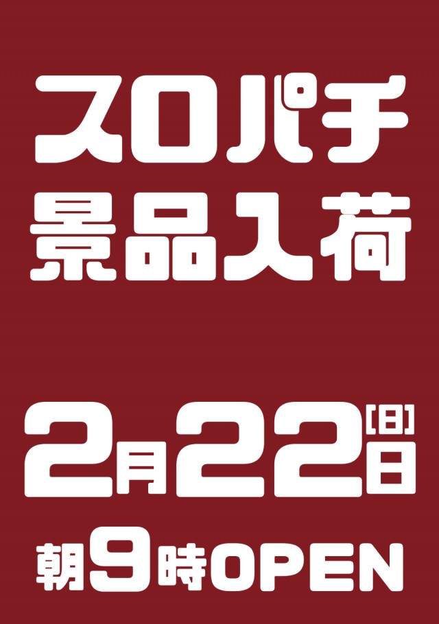 ※見逃し厳禁 !! 2月22日 スロパチ景品入荷 !!