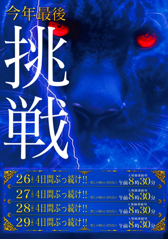 【 今年最後の挑戦 】2❻日~2❾日 4日間 ぶっ続け!!