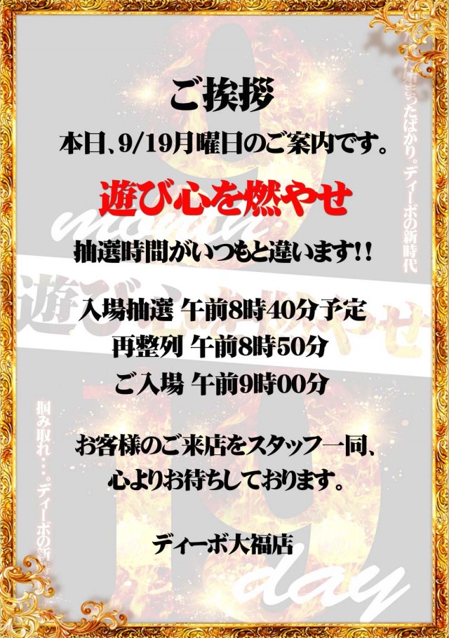 《 本日 》9.19day 抽選時間にご注意下さい !!