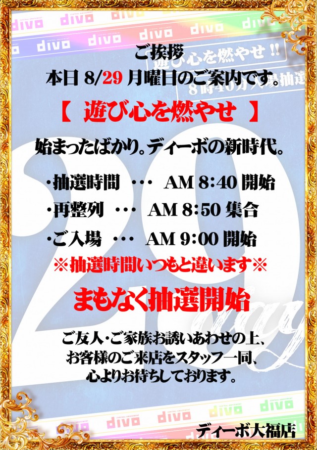 《 29day 》8時40分 抽選 ▶ 遊び心を燃やせ !!