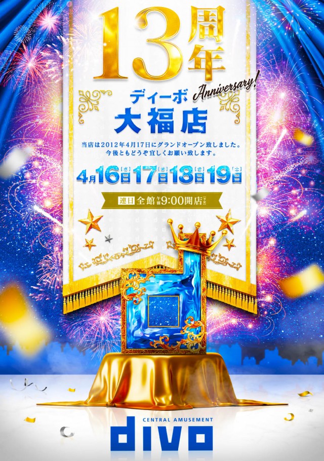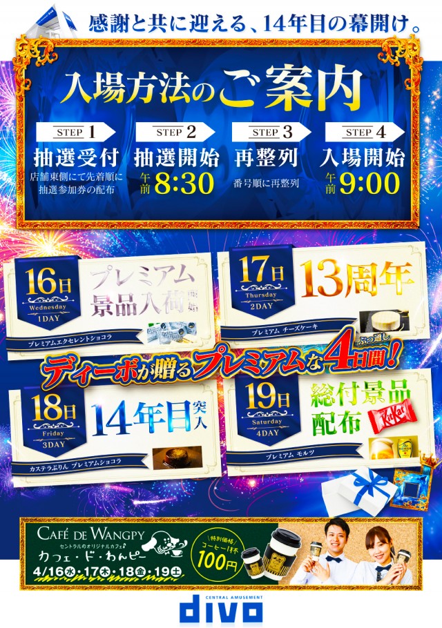 《 ①➌周年 》4日間ぶっとおし!! 8時30分抽選開始!!