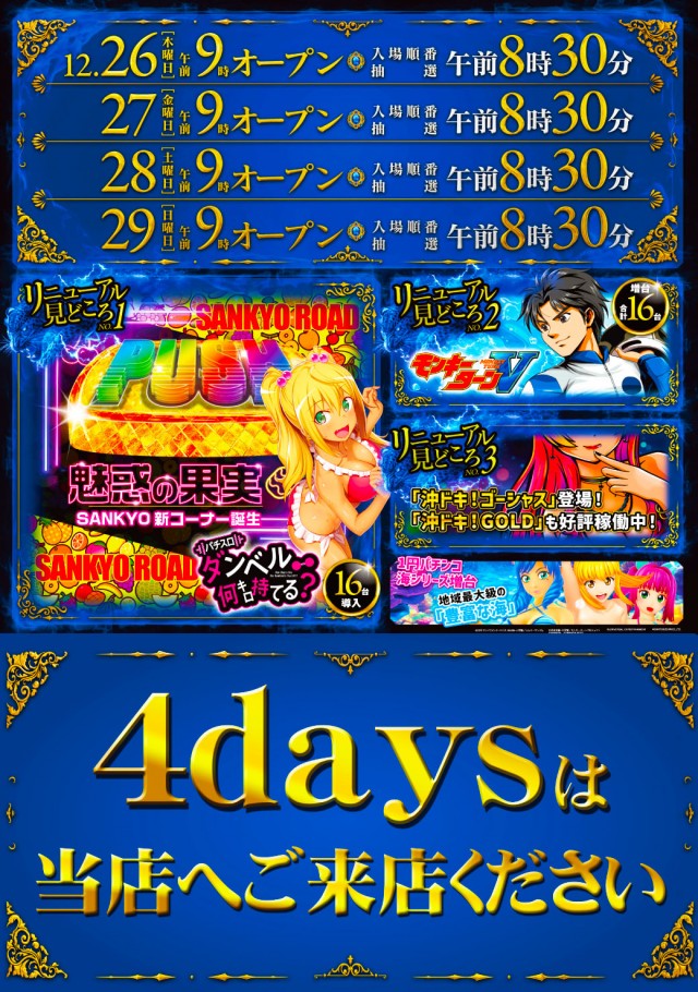 【12月26日】リニューアルオープン!!抽選8時30分~開始