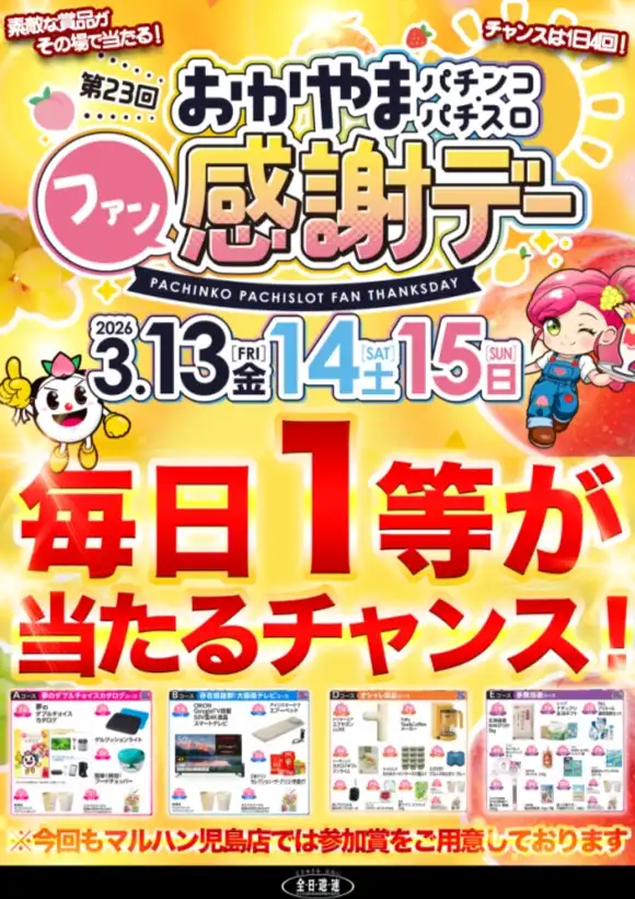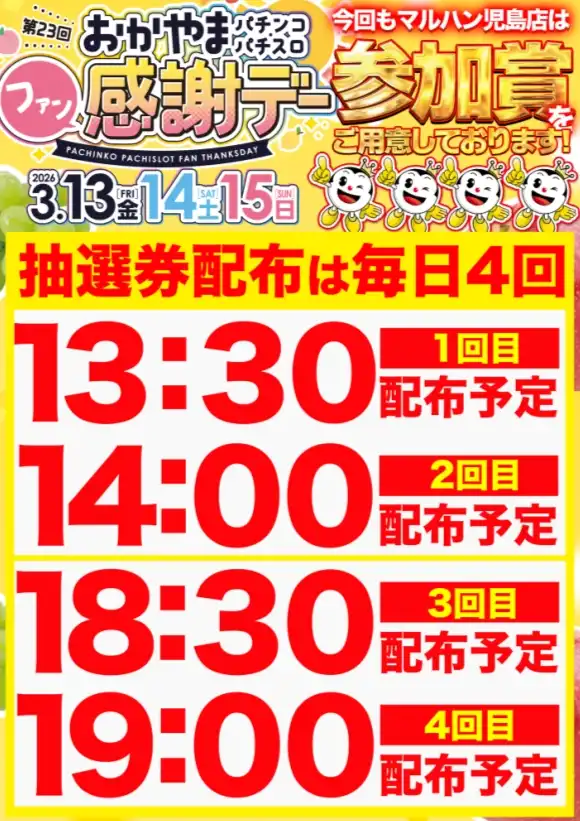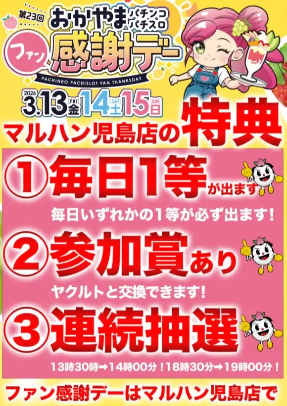 マルハン児島店の店舗からのお知らせ