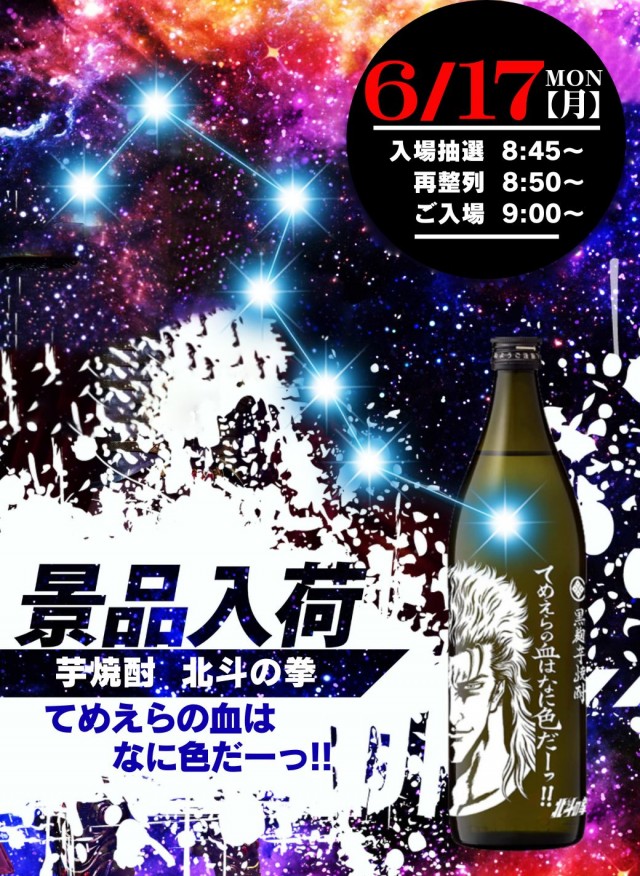 LINEオンライン抽選 【抽選受付時間・場所】 日時:8:00~8:45、8:00~8:30 場所:店舗内 【ご準備のお願い】スマートフォンとLINEアプリの位置情報取得を常時許可してください。 【抽選参加方法】店舗に設置されたQRコードを読み込み受付 |