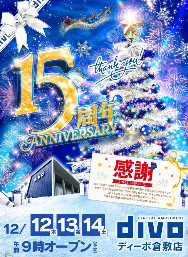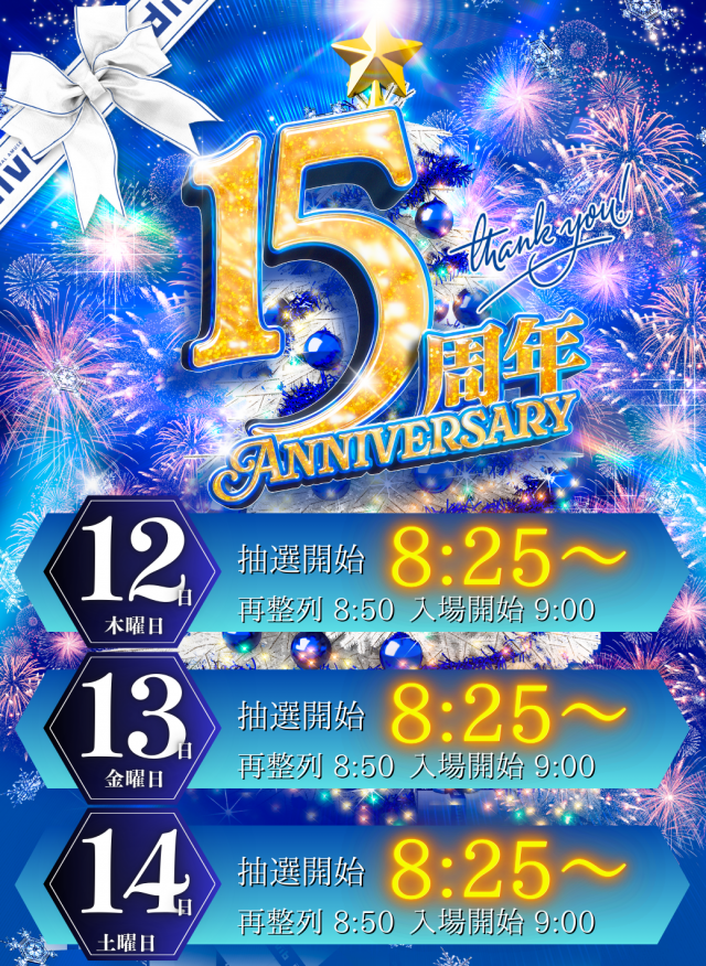 明日、12/12 15周年!!!ご来店をお待ちしております!