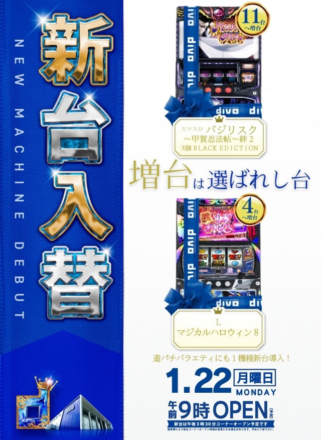 明日、1/22 バジリスク絆天膳とマジハロ8増台!